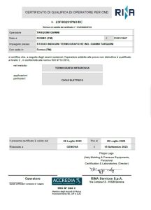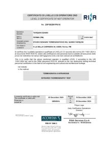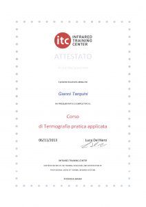 Frequenta il Corso di Termografia di 1° livello ITC presso la Flir di Limbiate (MB) nel 2006 ed inizia ad operare nel settore elettrico. Nel 2012 consegue il certificato di 2° livello ITC e ISO 9712.